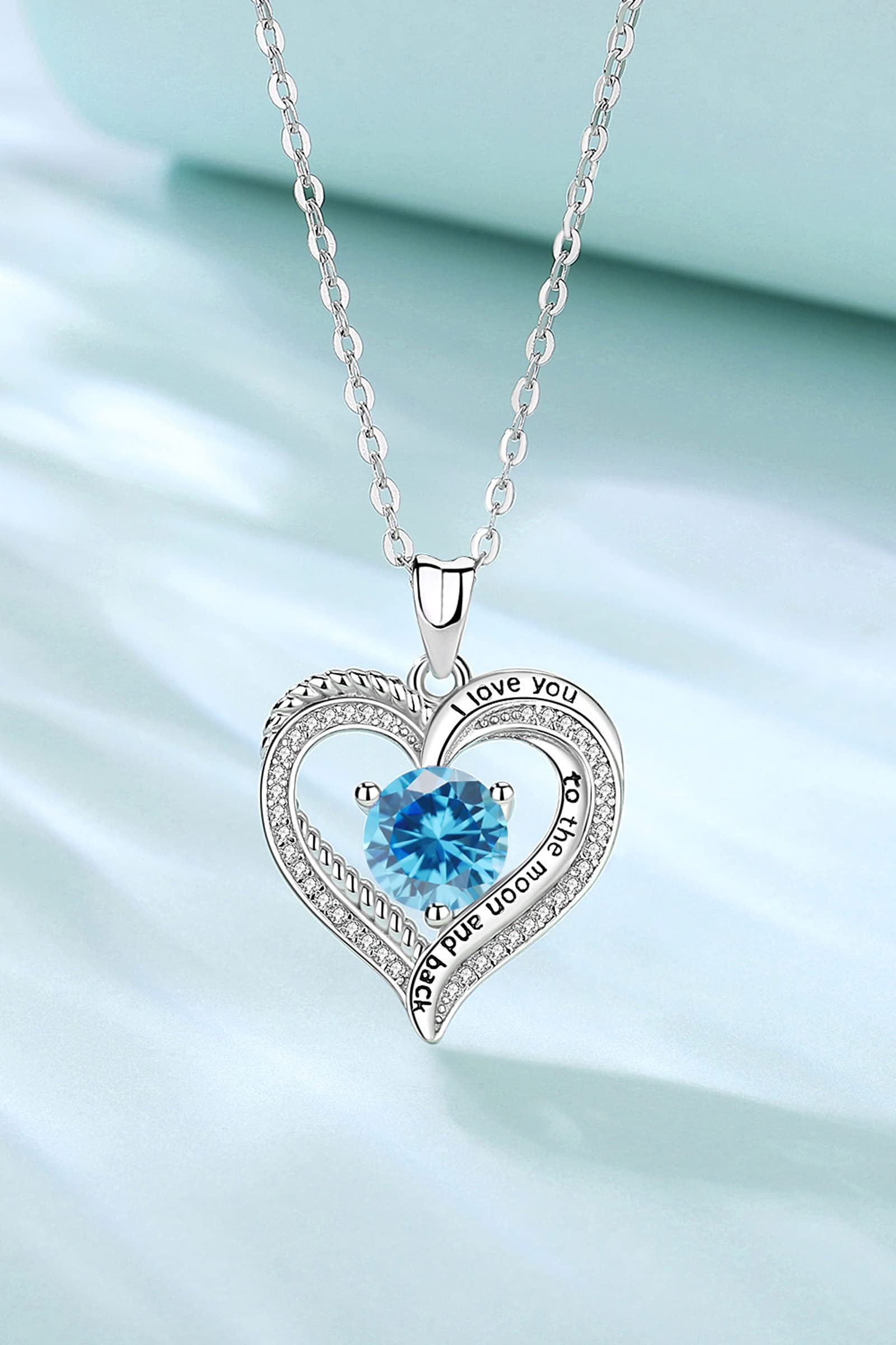 - MARCH BIRTHSTONE: Blue brings change. It promotes a sense of responsibility and the ability to concentrate. Engraved on the necklace "I love you to the moon and back", represents the eternal love.