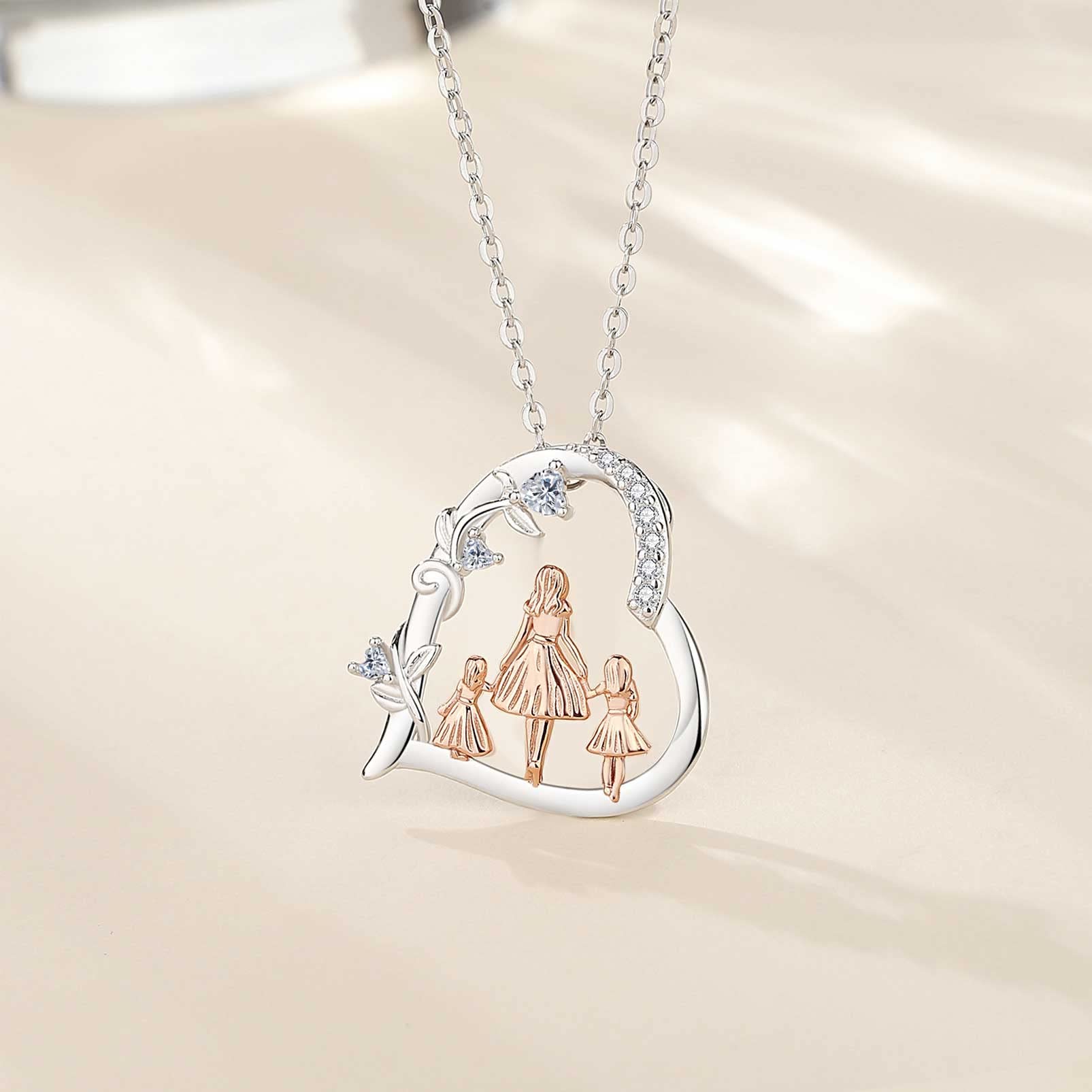- DESIGN CONCEPT: The mother took her two daughters by the hand. Surrounded by love, the mother and daughters walked towards happiness. Three heart cubic zirconias also represent mother and daughters respectively. Whether you are an adult, whether you are old or not, mother's love will never change.