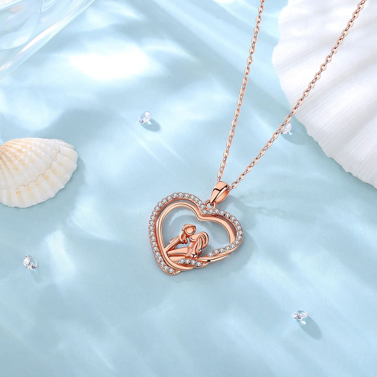 EUDORA Sterling Silver Mother Daughter Son Necklace for Mama, Rose Gold Mom Daughter Necklaces Jewelry Pendant, Mother's Day Gift for Mother Stepmother Mom from Son Daughter, 18inch