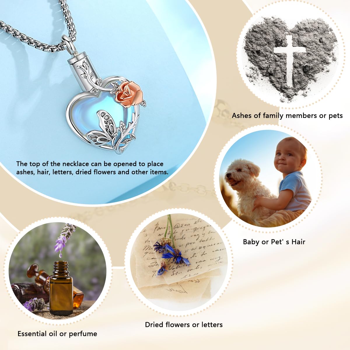 - CLEAR MOONSTONE: The urn necklace is inlaid with a heart-shaped moonstone. The luster of the moonstone shows different colors under different backgrounds, symbolizing warm and peaceful love. The material of the product is made of sterling silver with rhodium plating, which makes your pendant more shiny.